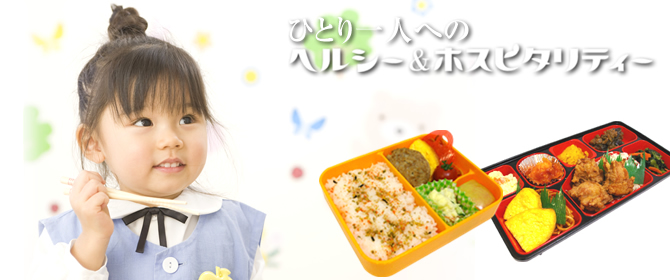 私たちは、『お役に立ちたい』また、『お役に立てていると実感できる仕事をしたい』という気持ちを絶えず持ち続け、お客様ひとり一人への『おもてなしの心』を忘れず、常に「安全性」「嗜好性」「経済性」そして「楽しさ」と「健康」を5つの柱に、多種多様なニーズにお応えできるような食事をご提案いたします。 各種お弁当、社員食堂、学校・幼稚園(保育園)給食、福祉施設・病院施設の給食のことなら、是非、弊社までお気軽にご相談ください。